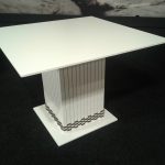 La mesa puede ser de base y columna cuadrada, o bien, de forma redonda dependiendo de la forma del tablero de la mesa.